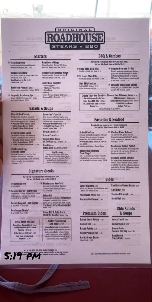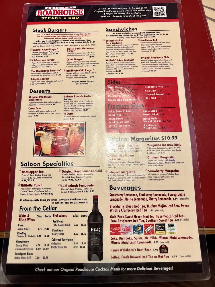 Introducing Original Roadhouse Grill, a popular steakhouse located in Victorville, CA. This casual dining spot offers a range of amenities, including delivery, takeout, and catering services. From savory starters like Texas Egg Rolls and Roadhouse Cheese Fries to mouthwatering main courses such as the Cowboy Cut Prime Rib and Surf and Turf, there is something for everyone at this establishment. Customers rave about the flavorful dishes, attentive service, and welcoming atmosphere. The steak selection, highlighted by the Roadhouse Sirloin, is a definite crowd-pleaser. Don't forget to indulge in the delicious house salad and garlic butter filet, accompanied by freshly baked bread and honey butter. Whether you're craving a hearty steak or a light salad, Original Roadhouse Grill delivers on taste and value. A must-visit destination for those seeking a satisfying dining experience.